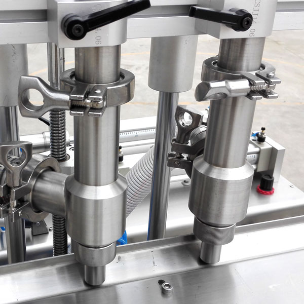 1、半自動雙頭辣椒醬灌裝設備可以通過操作人員用腳踏控制開關,也可以設置光電感應開關,一次性自動完成計量、下料,將粘稠醬類、花生醬類等物料直接灌入容器中即完成一次動作。