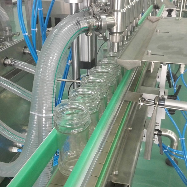 4、六頭辣椒醬灌裝機灌裝時瓶子不到位、瓶子堵塞活出液管沒有插進瓶子時設備將自動保護,排除后繼續作業。