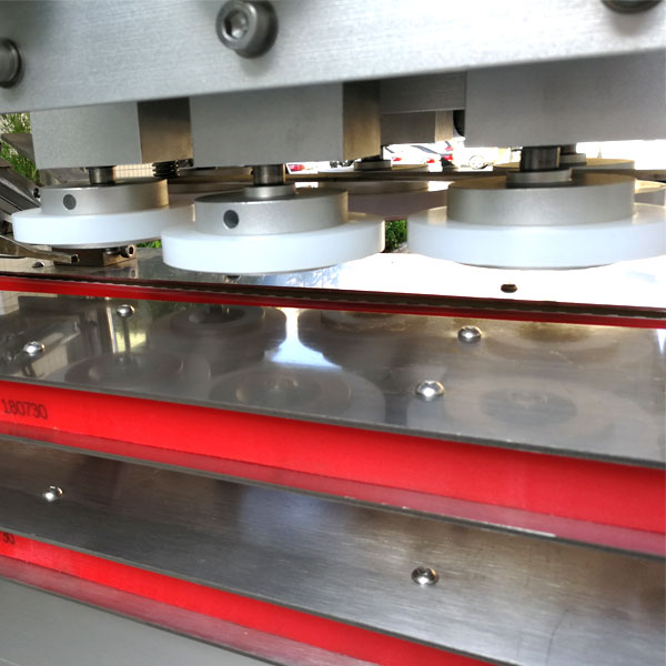 通用型高速旋蓋設(shè)備工作原理:瓶蓋經(jīng)理蓋機構(gòu)整理,口朝上的瓶蓋源源不斷地送到落蓋軌道,從流水線其他設(shè)備上輸送到送瓶軌道上的瓶子進入落蓋區(qū),在瓶子被兩邊夾瓶裝置夾緊向前移動時自動將瓶蓋套上,直線式旋蓋機壓蓋裝置在旋蓋前先將瓶蓋壓至預(yù)緊狀態(tài),在三對高速旋轉(zhuǎn)的耐磨橡膠輪的作用下,瓶蓋緊緊地旋在瓶身上。